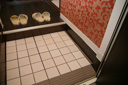 | 《ベランダ用置敷きタイルを玄関に利用し印象アップ》 | |||||||||||